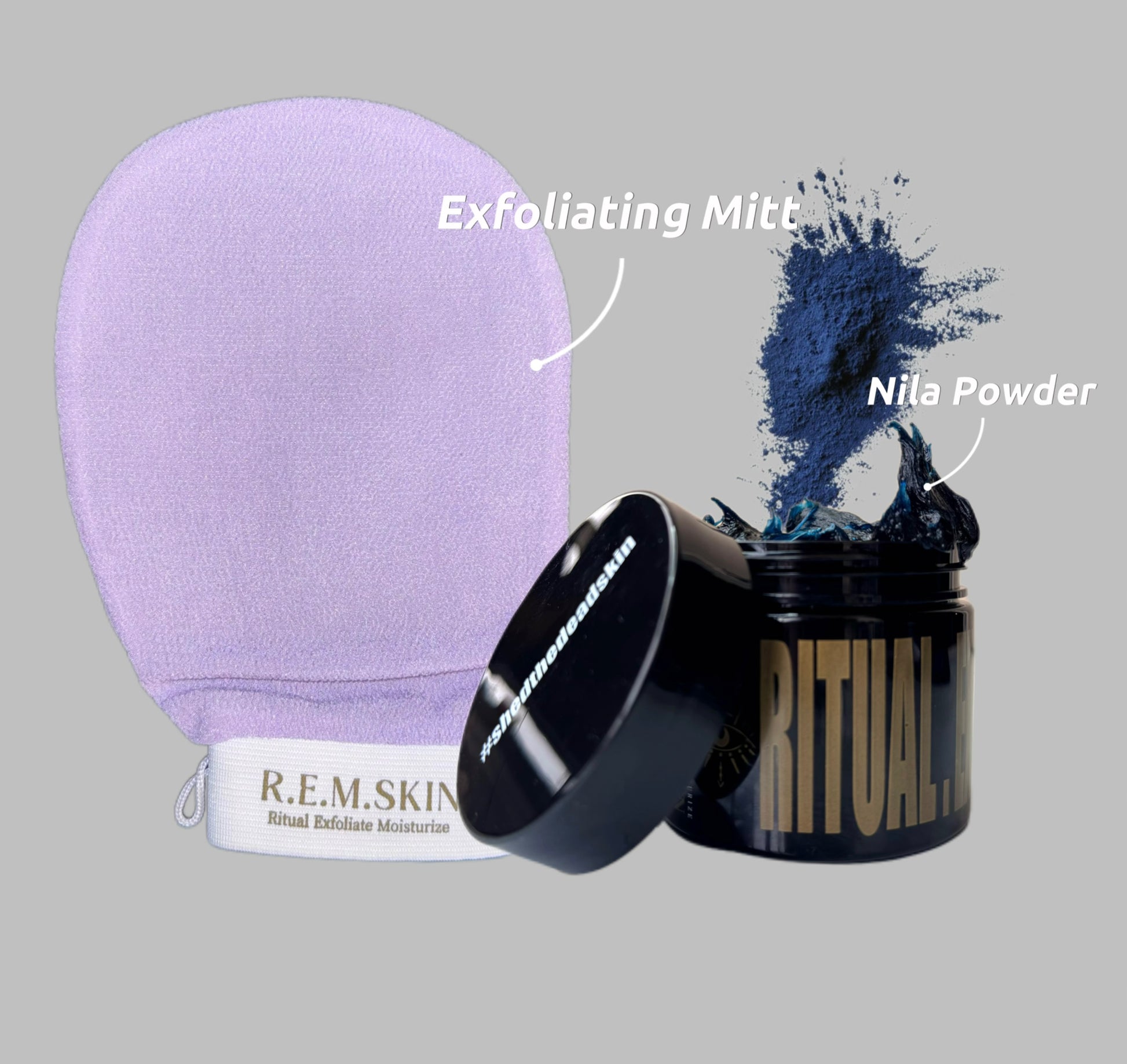 Complete Ritual Set: Moroccan Black Soap with Nila Powder & Exfoliating Mitt