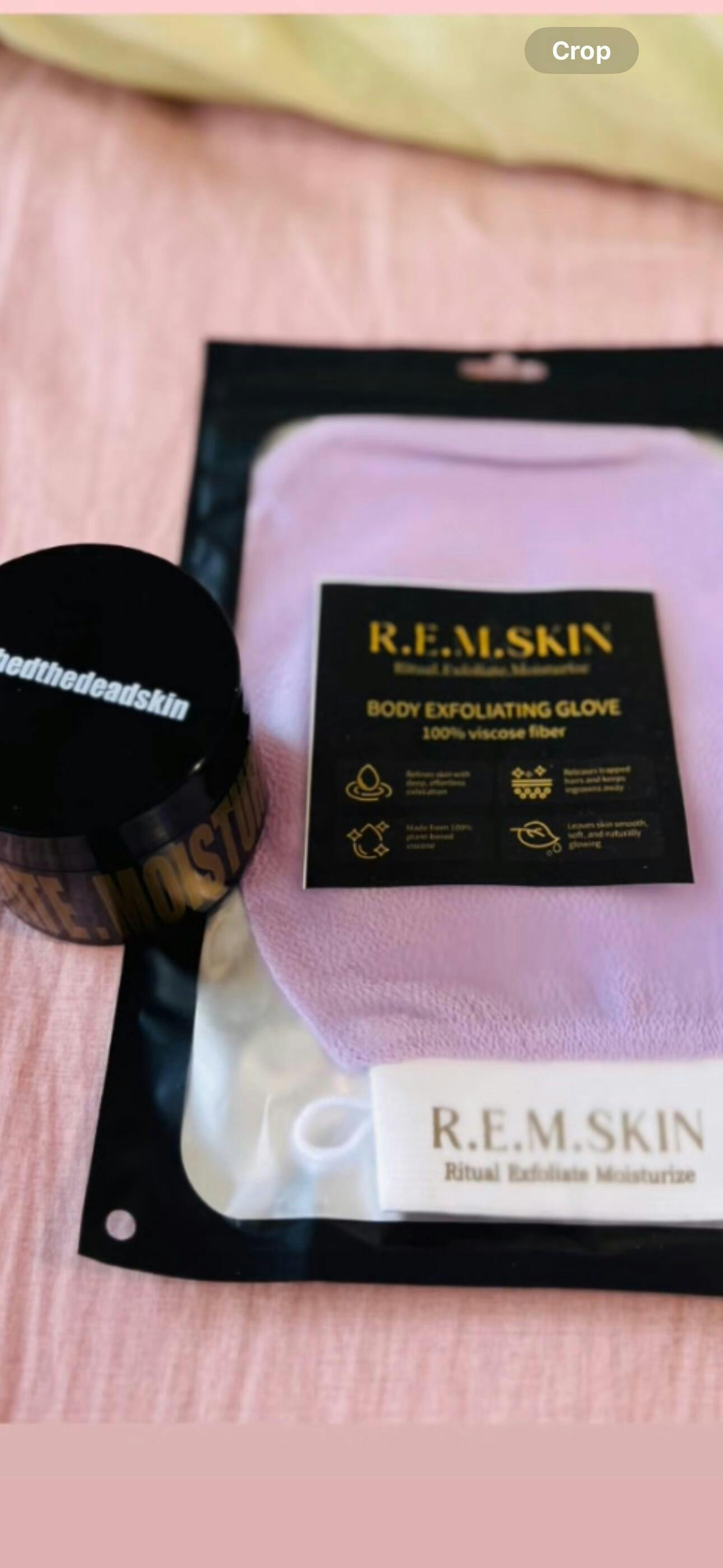 - Exfoliate - (gently) Use your damp Remskin Exfoliating Mitt to scrub in long upward & downward firm strokes. You’ll see dead skin peel off.
